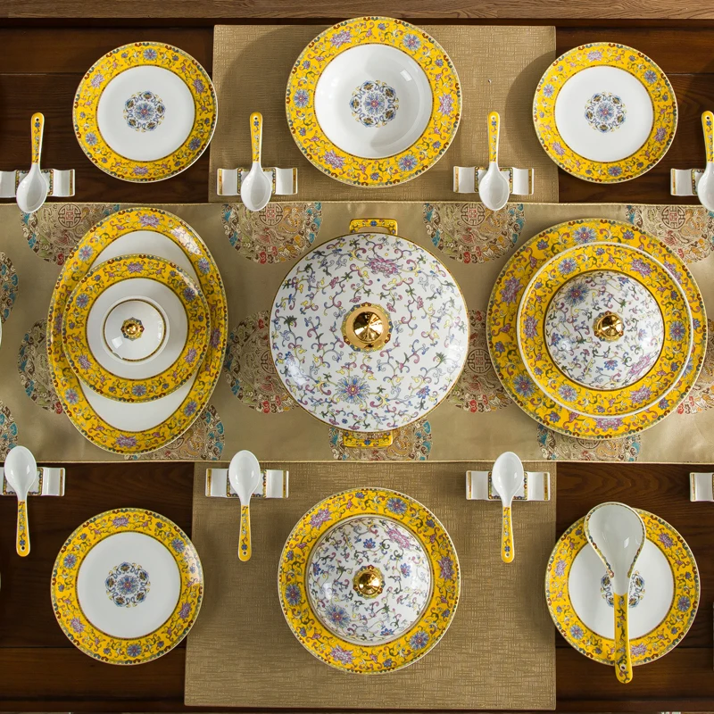 Product Name: 80pieces Wedding Bone China Tableware Set Royal Enamel High Grade Chinese Household Luxury Jingdezhen Ceramic Ware Dish Set Gift